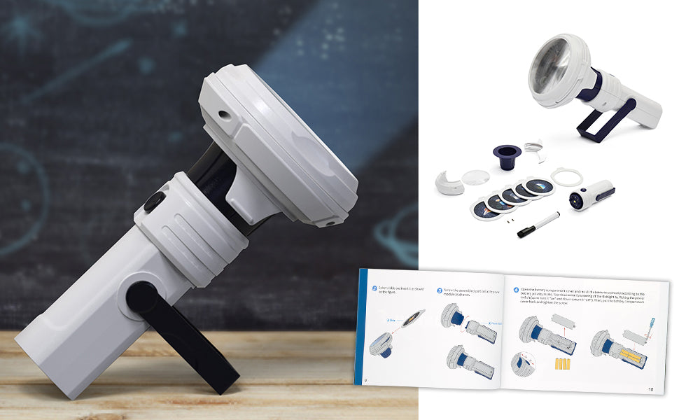 The PlaySTEM 3D Galaxy Projector is the perfect activity for students interested in the Solar System. Observe the Earth, Moon, Saturn and Jupiter or create your own planet with the blank projection slide. This projector rotates to create a 3D illusion of the galaxy to bring the Solar System to life. Complete with a 24-page learning booklet, read about the Milky Way and more fun facts about the Solar System!