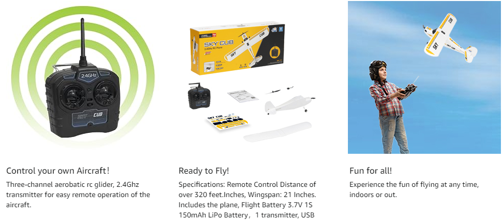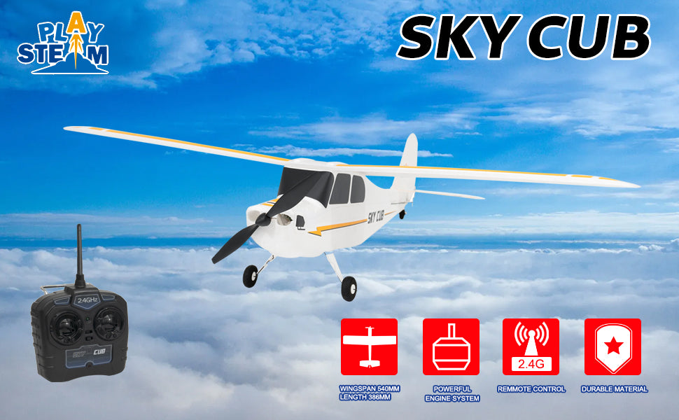 Teach yourself to fly with SKY CUB! Its ultra-micro size makes it the ideal choice for a smaller trainer model that can be flown in parks. The Magnetic Adaptive Wing detaches itself in a crash, minimizes the damage to your plane.