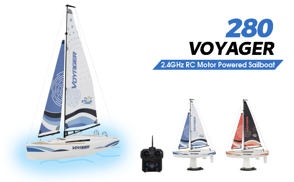 The PLAYSTEM Voyager 280 Motor Powered Sailboat is available in 2 different colors, red and blue! This product uses a motor to control the sailboat to move forward and backward, avoiding the sailboat being trapped when encountering a complex environment, no wind or loss of control, resulting in unable to sail back to the shore.