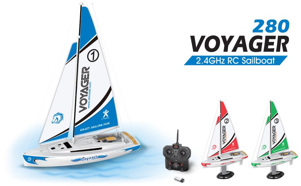 The PlaySTEM Mini Voyager 280 2.4G Sailboat is available in 3 different colors-red, blue, and green! This is an easy to use product with no assembly required. Complete with a wire transmitter, control your boat and race against others.