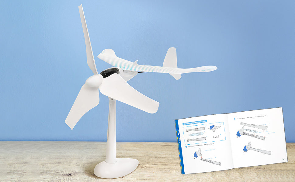 Convert wind into electricity to power an airplane and watch it fly. Complete with a 35-page learning booklet, read about how wind turbines can be used for powering your home.